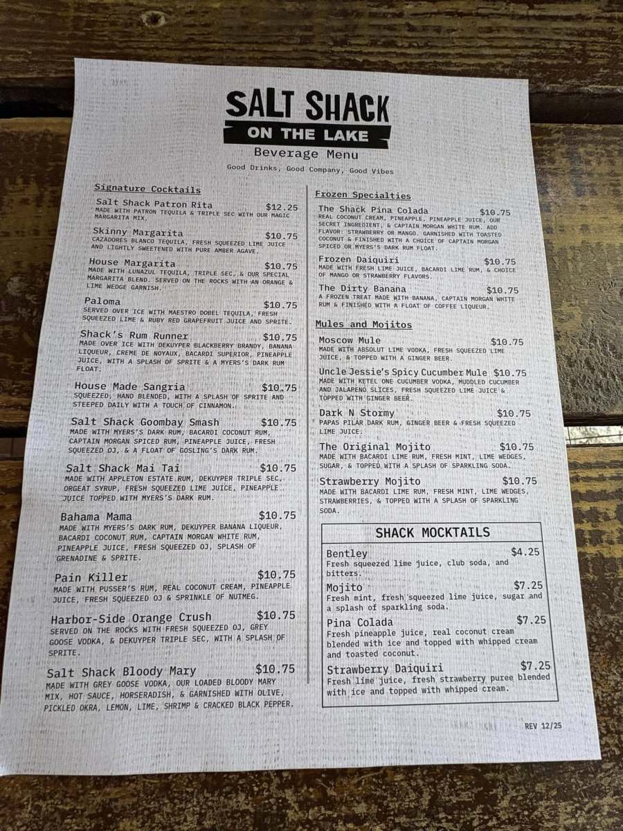 Salt Shack keeps things easy and accessible. You can pull up by car or, if you’re already out on the water, dock your boat and walk right up. Boat-up access makes it a popular stop for lake days, especially for locals who want to grab a bite without heading back to shore.