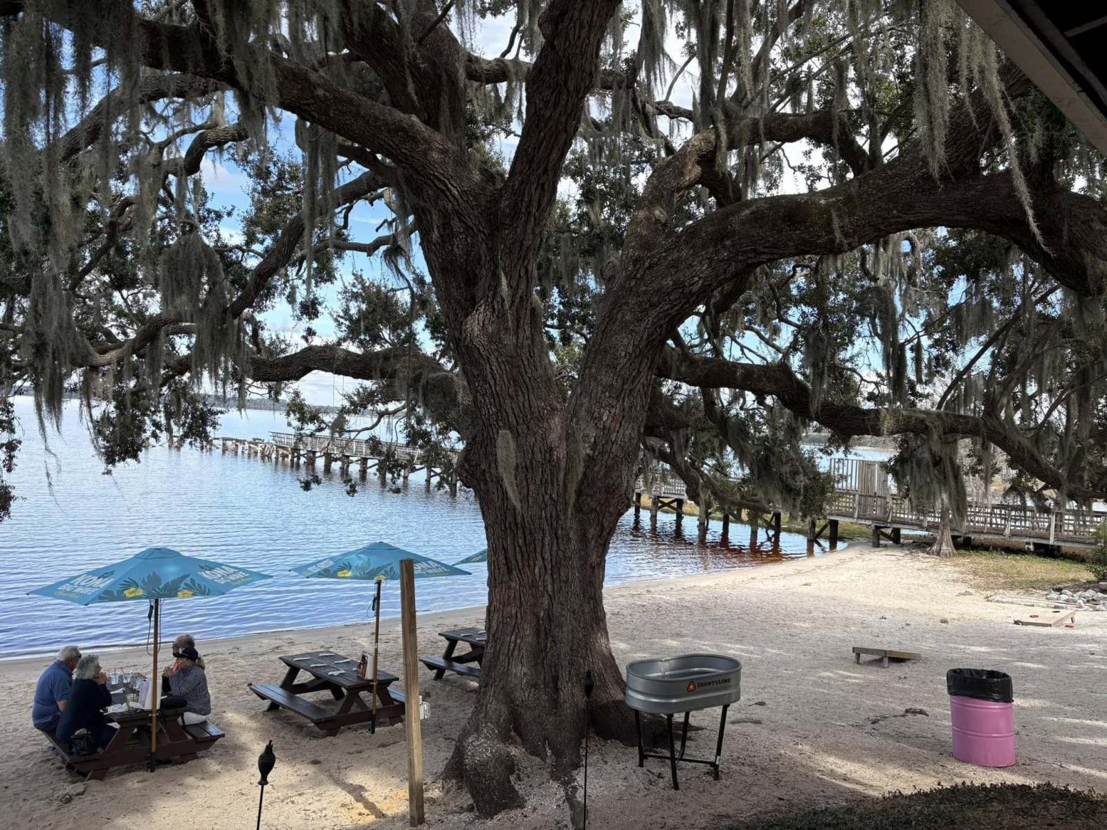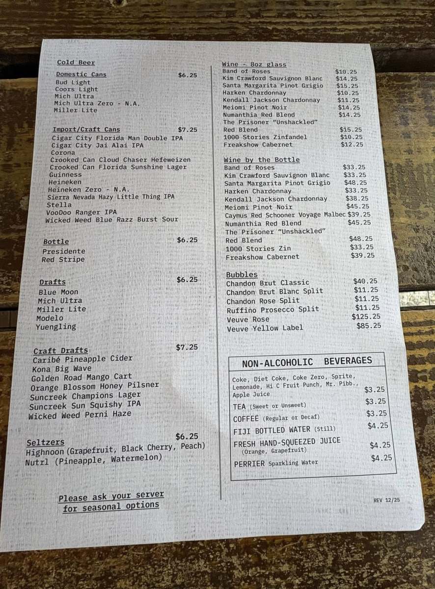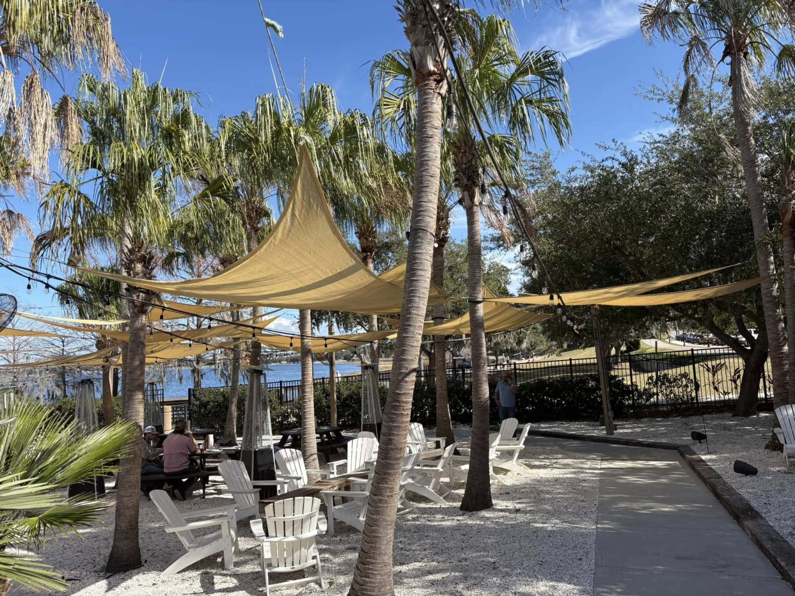The setup is mostly open-air, with a mix of shaded and outdoor seating that lets you enjoy the Florida weather without feeling boxed in.