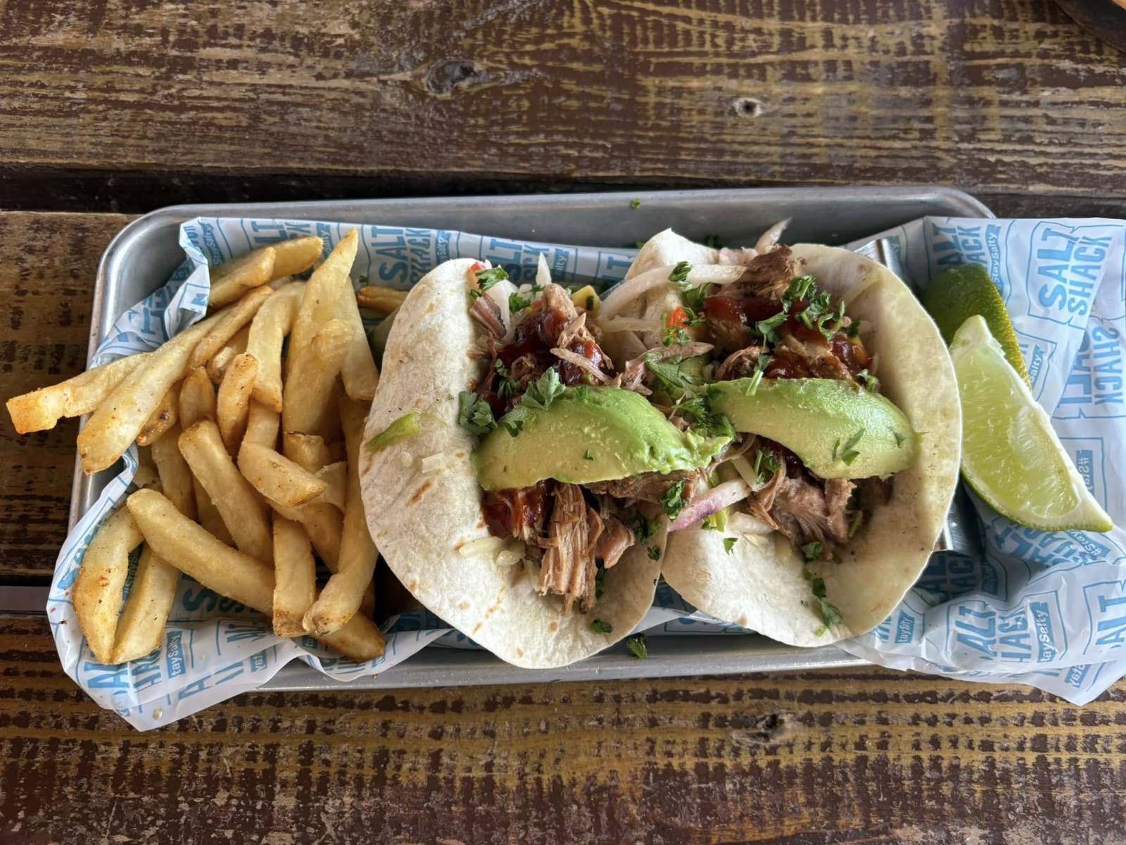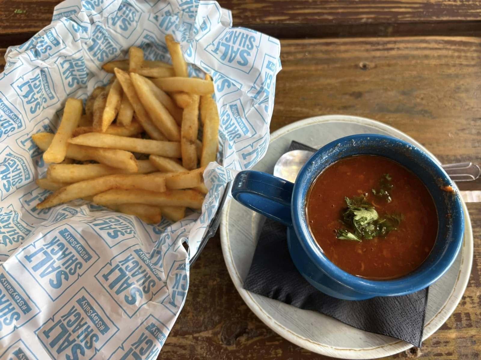 One of the biggest draws of Salt Shack On The Lake is its location right on the water. Guests can grab a seat on the balcony overlooking the lake or opt for bench seating right along the shoreline. The views are especially inviting in the afternoon, when the light reflects off the water and the breeze rolls in.